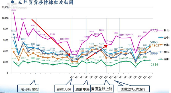 根據中信房屋研展室統計彙整,今年房市買盤從2月谷底反彈,尤其3至5月買移轉棟數如「深V反彈」,到5月份五都的成交量僅有台北市沒回到奢侈稅前的水準,其餘新北、台中、高雄、台南都有亮眼表現。