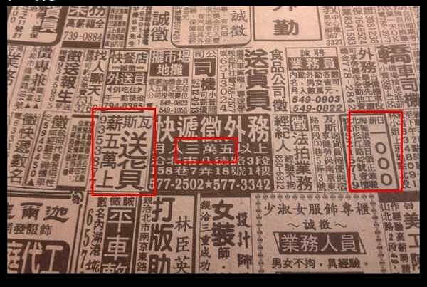網友翻出民國85年報紙當中的徵才專欄,瓦斯送貨員一個月薪水有50K,快遞員也有35K,連海報派送日薪也有一千塊錢!
